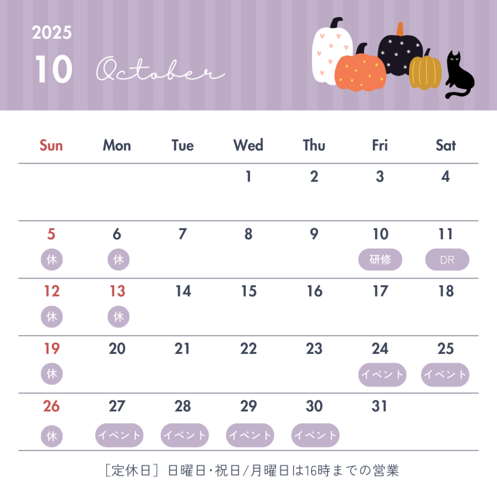 ♦空欄の日はトリートメント(お手入れ)可能日です。